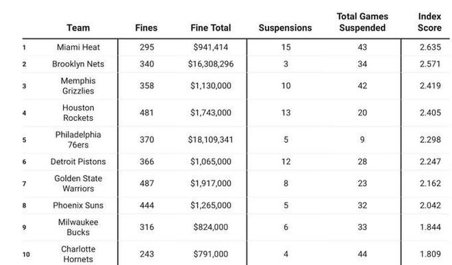 美媒盤點NBA過去十年最“臟”球隊:熱火居首,馬刺最干凈